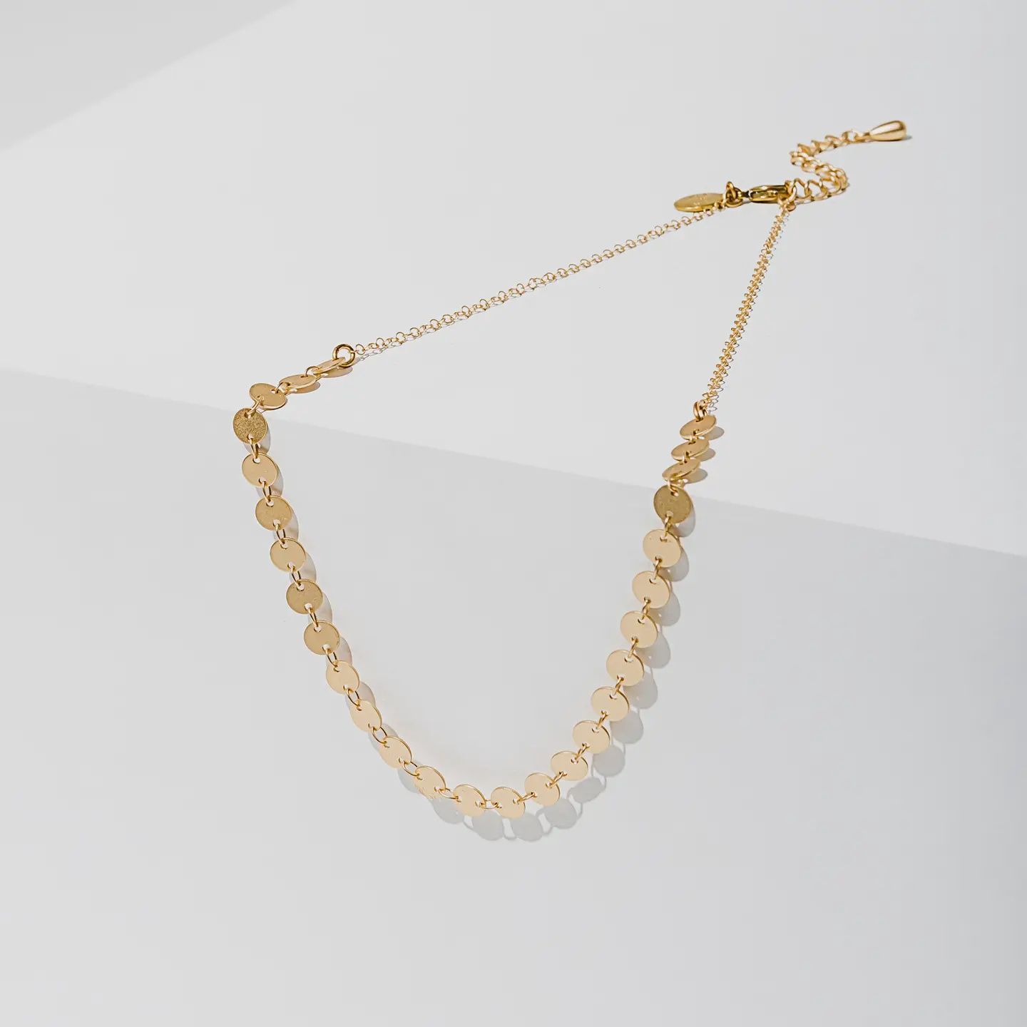 Round and round we go... A dainty, minimalist dream, the Candra circles necklace features tiny circles plated with a matte gold or shiny silver finish on a 15" chain. It has a 2 1/2" extender, making it adjustable, accessible, and versatile as hell.
